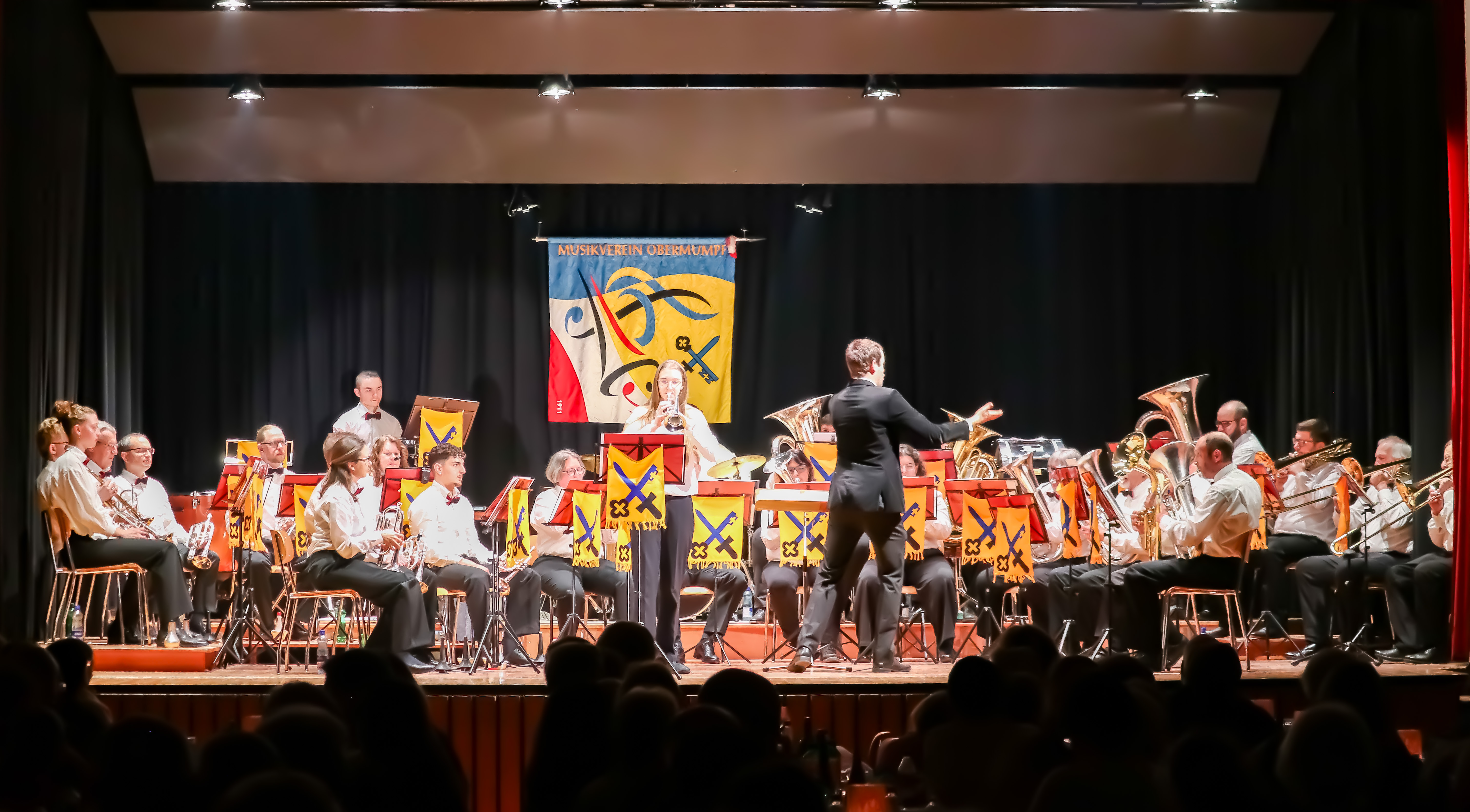Das Jahreskonzert des Musikvereins Obermumpf versprach mit seinem Motto «Grosses Kino» einen packenden Soundtrack fürs Kopfkino zu liefern. Und das wurde eingehalten! Unter der Direktion von Bodo Maier und der charmanten Präsentation durch Patrizia Binkert unterhielt der MVO sein Publikum am Samstag sowie Sonntag mit einem bunten Strauss an Melodien. Fulminant der Einstieg mit einem Ennio Moricone-Medley, gefolgt von weiteren mitreissenden Film-Melodien. Auch Walzer, Polka, Rock und Schlager waren im Programm. Ein gut gehütetes Geheimnis durfte während des Programms gelüftet werden: unsere junge Kornettistin Hella hat ein schwieriges Solostück ganz heimlich geübt, um damit ihre Familie zu überraschen: ein verspätetes Weihnachtsgeschenk. Damit landete sie einen Volltreffer, «Cheer up, Charlie» wurde frenetisch beklatscht und eine Zugabe gefordert. Mit energiegeladenem Sound und bekannten Melodien fand das Konzert grossen Anklang und brachte praktisch alle Füsse zum Wippen.